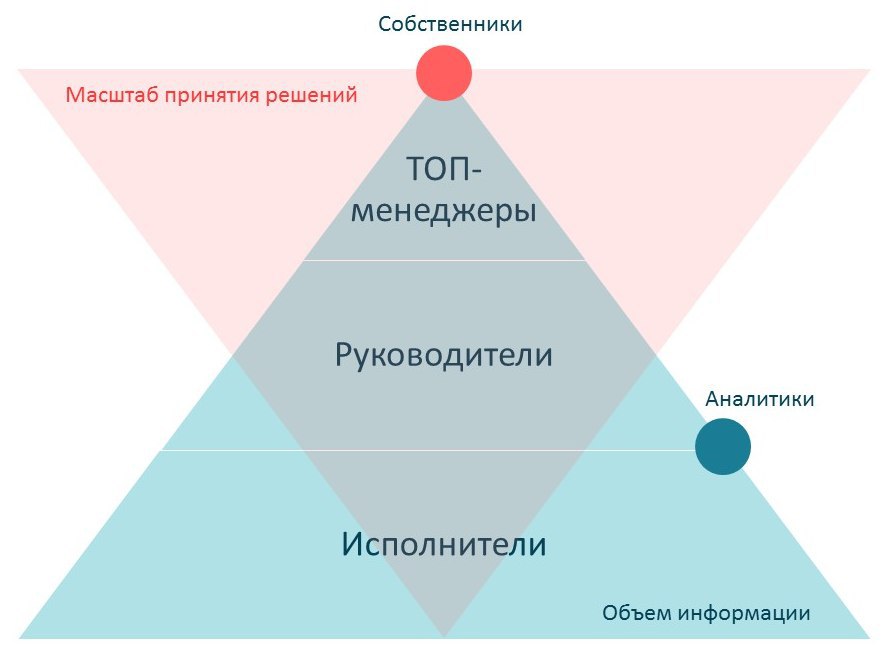 Если сопоставить эту «пищевую цепь» принятия решений с объемами информации, которая проходит через людей, то получится такая картина: чем больше важных решений принимает человек, тем меньше данных он способен анализировать. Это глобальное нарушение симметрии между теми, кто имеет доступ к данным, и теми, кто имеет право действовать.