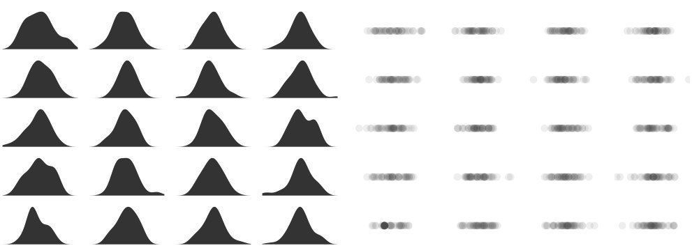 #визуализации (такие как гистограммы) для выявления проблем с качеством данных. Тем не менее, эти визуализации имеют параметры (например размер ячейки гистограммы или непрозрачность меток) которые оказывают большое влияние на окончательный внешний вид диаграммы, но редко несут в себе цель выделить ❕ свойства исследуемых наборов данных.