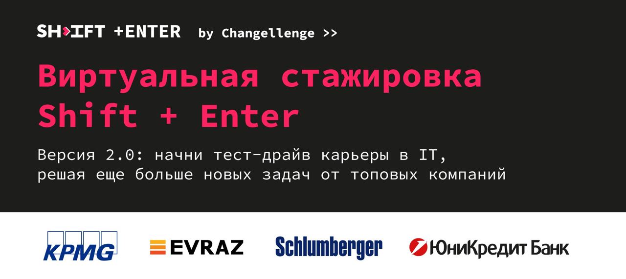 Хочешь получить работу в KPMG, Schlumberger, UniCredit Bank, «ЕВРАЗ» или другой топовой компании? Регистрируйся на онлайн-стажировку Shift+Enter by Changellenge >>, забери гарантированные подарки и получи возможность выиграть сертификат OZON на 3000 рублей!