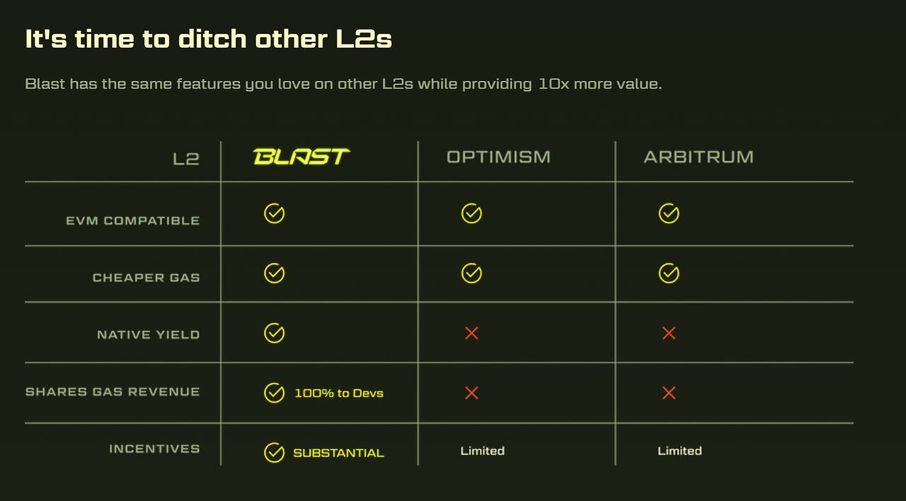 Но разработчики Blur решили пойти еще дальше и анонсировали целую L2-сеть Blast, где прибыль от LST и RWA встроена на уровне протокола.