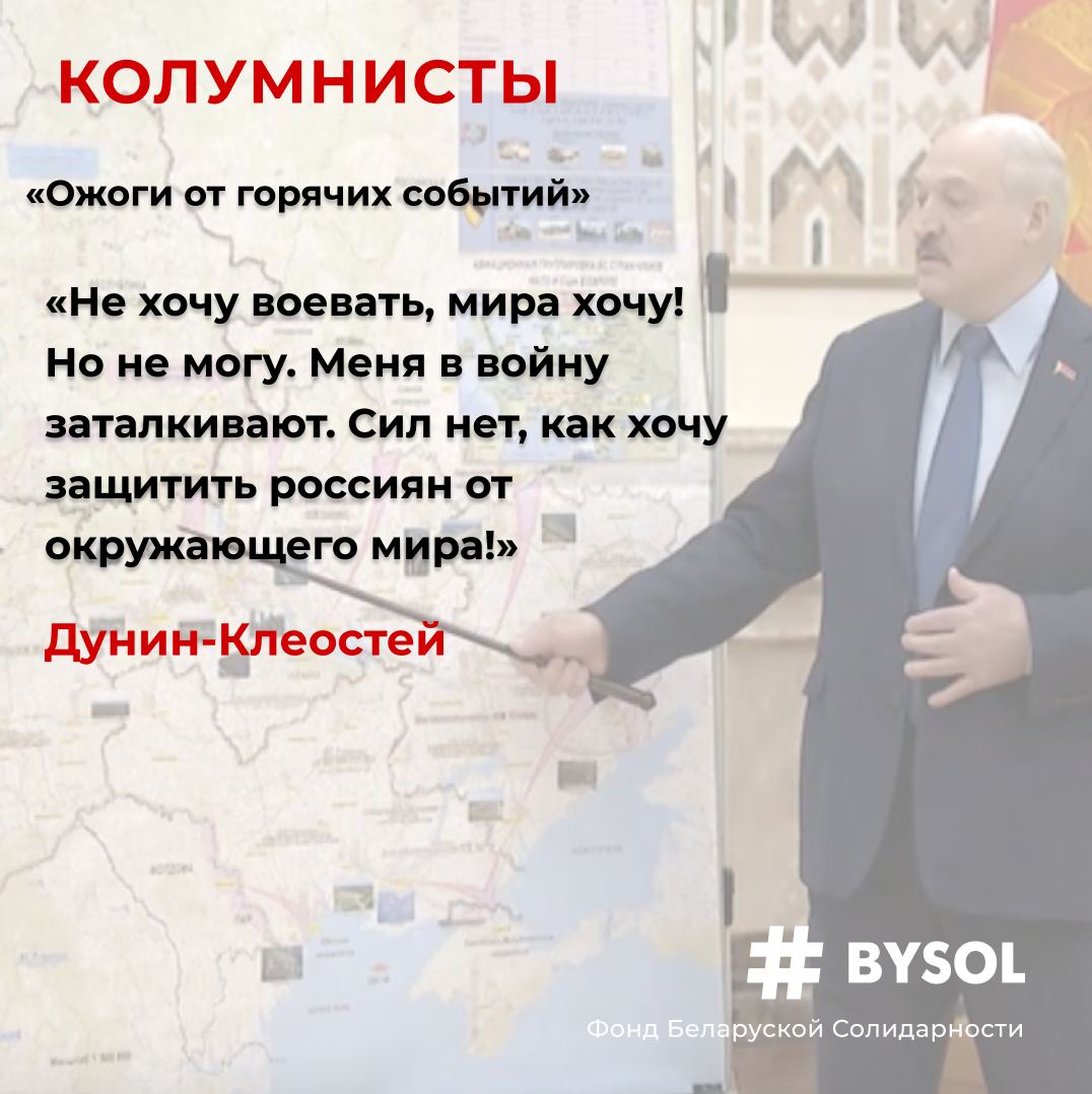 Сегодня каждый беларус против войны. Мы не хотим воевать, нам не нужна эта война. Лукашенко предаёт наши святые интересы мира и втягивает нас в это. Войну за что? Войну во имя чего? Войну для кого?