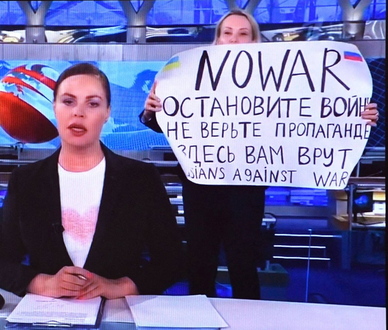 В начале недели в прямом эфире программы «Время» за спиной ведущей появилась девушка с антивоенным плакатом и стала выкрикивать «нет войне» и «здесь вам врут».
