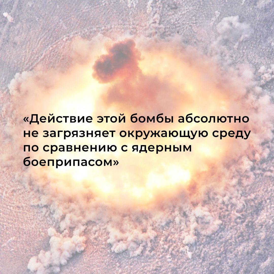 «Действие этой бомбы абсолютно не загрязняет окружающую среду по сравнению с ядерным боеприпасом»