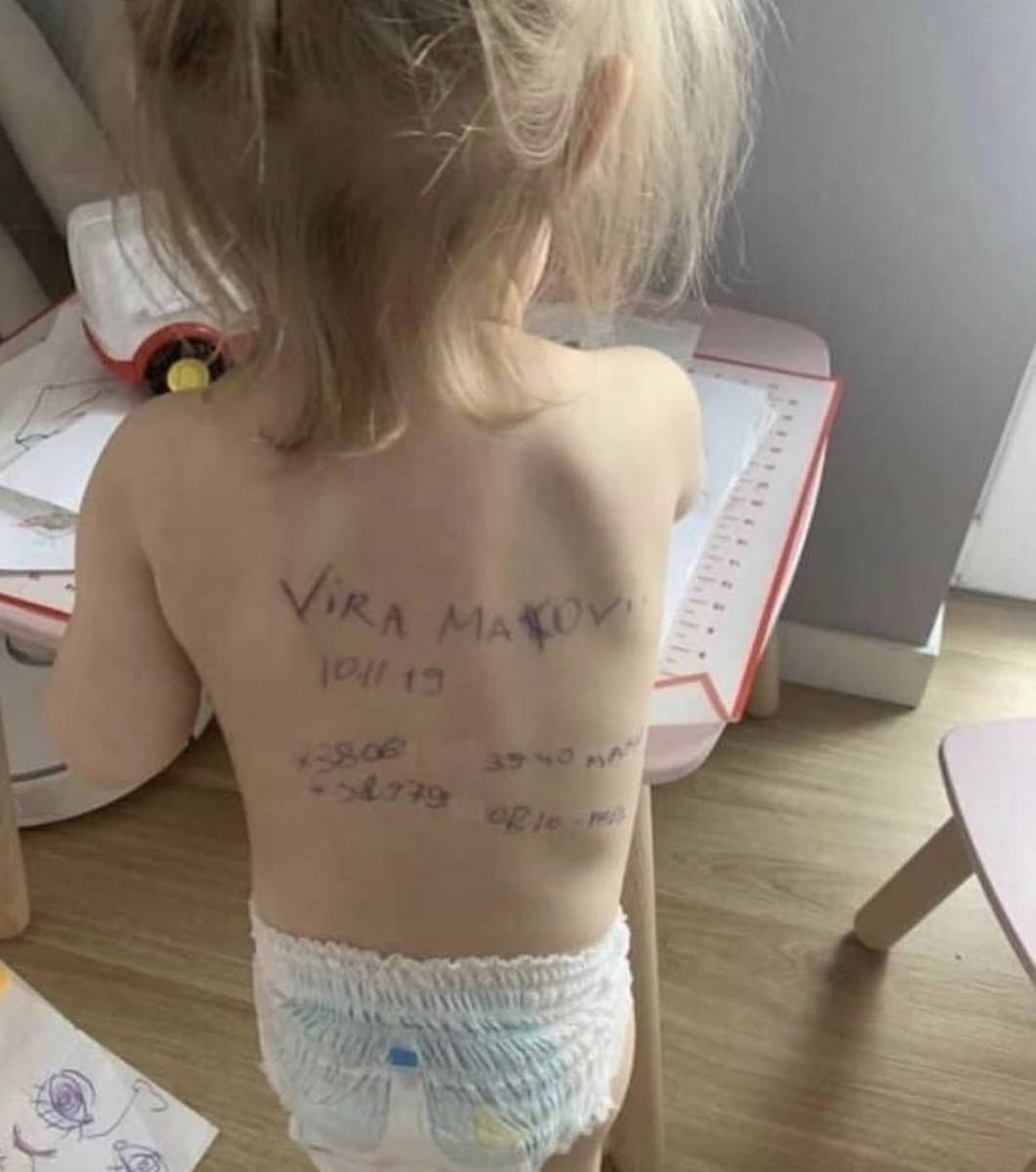 «Понимаете, почему на маленькой голой спине этой маленькой девочки надписи шариковой ручкой? Потому что 21 век. Потому что Россия напала на Украину. Потому что русские фашисты на глазах у всего мира убивают, насилуют и пытают украинских женщин, детей и стариков. Именно поэтому украинская мама написала на спине своей крошки ее имя и телефоны. Эту маму могут убить в любой момент», — написала украинская журналистка Алеся Бацман.