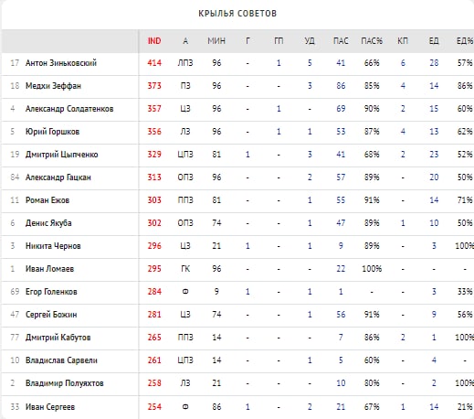 Лучшими игроками по индексу Instat являются - Лесовой, Шунин и Евгеньев.