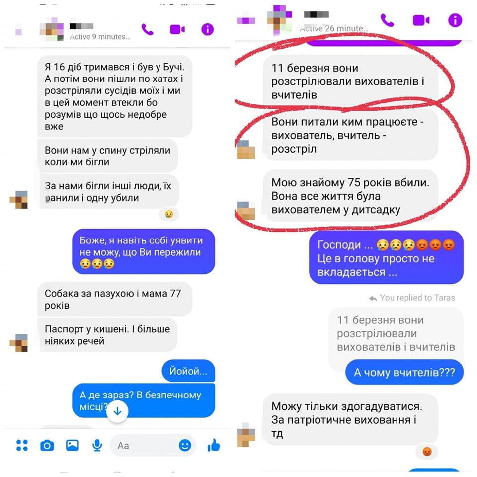 "Один з вихователів тримався майже до останнього. Якраз спілкувалася з ним. Почитайте ці два скріни. Я просто плакала:
