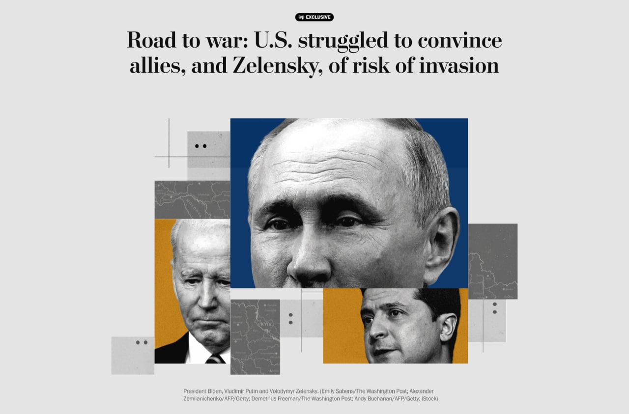 Газета The Washington Post опублікувала розгорнутий матеріал щодо планів російського диктатора Володимира Путіна перед великою війною проти України, про які адміністрація президента США Джо Байдена знала ще восени 2021 року. Вона також повідомляє, що Штати намагалися переконати в ризику вторгнення президента Володимира Зеленського та своїх союзників.