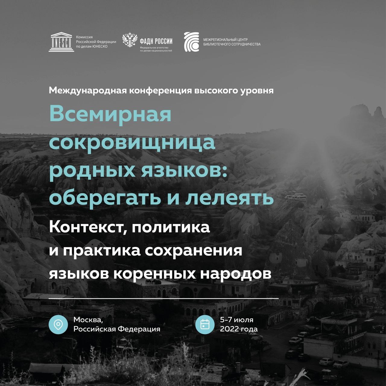 Москве 5-7 июля состоится Международная конференция высокого уровня «Всемирная сокровищница родных языков: оберегать и лелеять. Контекст, политика и практика сохранения языков коренных народов».