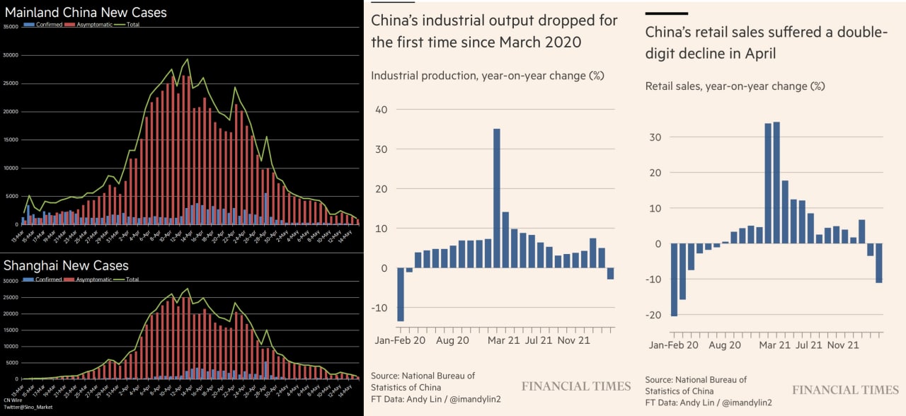 🔹 فعالیتهای صنعتی چین در ماه آوریل کاهش 2.9%-🔻 دارد (انتظار رشد 1.1%+) ... عملکرد ماه قبل آن (مارس 2022) رشد 5%+ بوده است