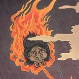 Пока искала их изображения обнаружила забавную эклектику — гирлянды из этих йокаев используют на Хеллоуин, и даже придают им соответствующую западной традиции расцветку: оранжевое тело и фиолетовый язык.
