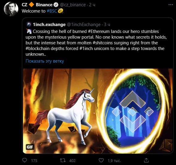 Обменник 1inch добавил поддержку сети Binance Smart Chain🥳
