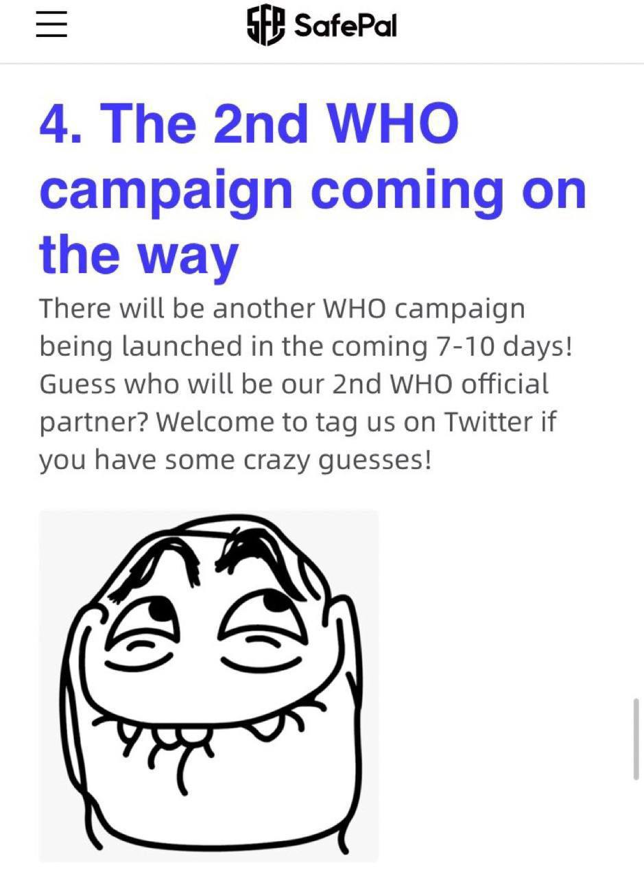 Недавно Safepal опубликовали пост в своём блоге.. В течении 7-10 дней нас ожидает анонс какой-то новой движухи. Готовят 2ой проект, в точности как был с TKO. С раздачей TKO, все ещё ждём выплаты уже со дня на день! Думаю упадёт порядочно, судя по их первой раздаче SFP.