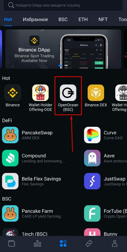 3. Перейдите в Dapp браузер и нажмите на такой же банер, как на скрине.
