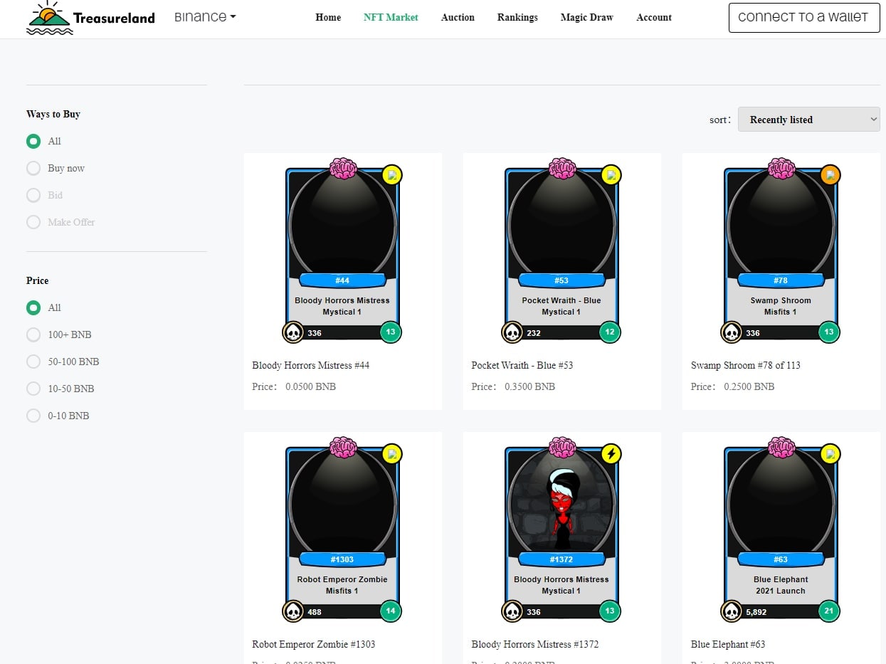 Да, treasureland не идеален, и понять, сколько ваш NFT стоит на самом деле будет очень тяжело. Берите в расчёт значения на самом NFT и его порядковый номер. Сейчас разброс цен на NFT очень большой, до 6-7 BNB доходит.