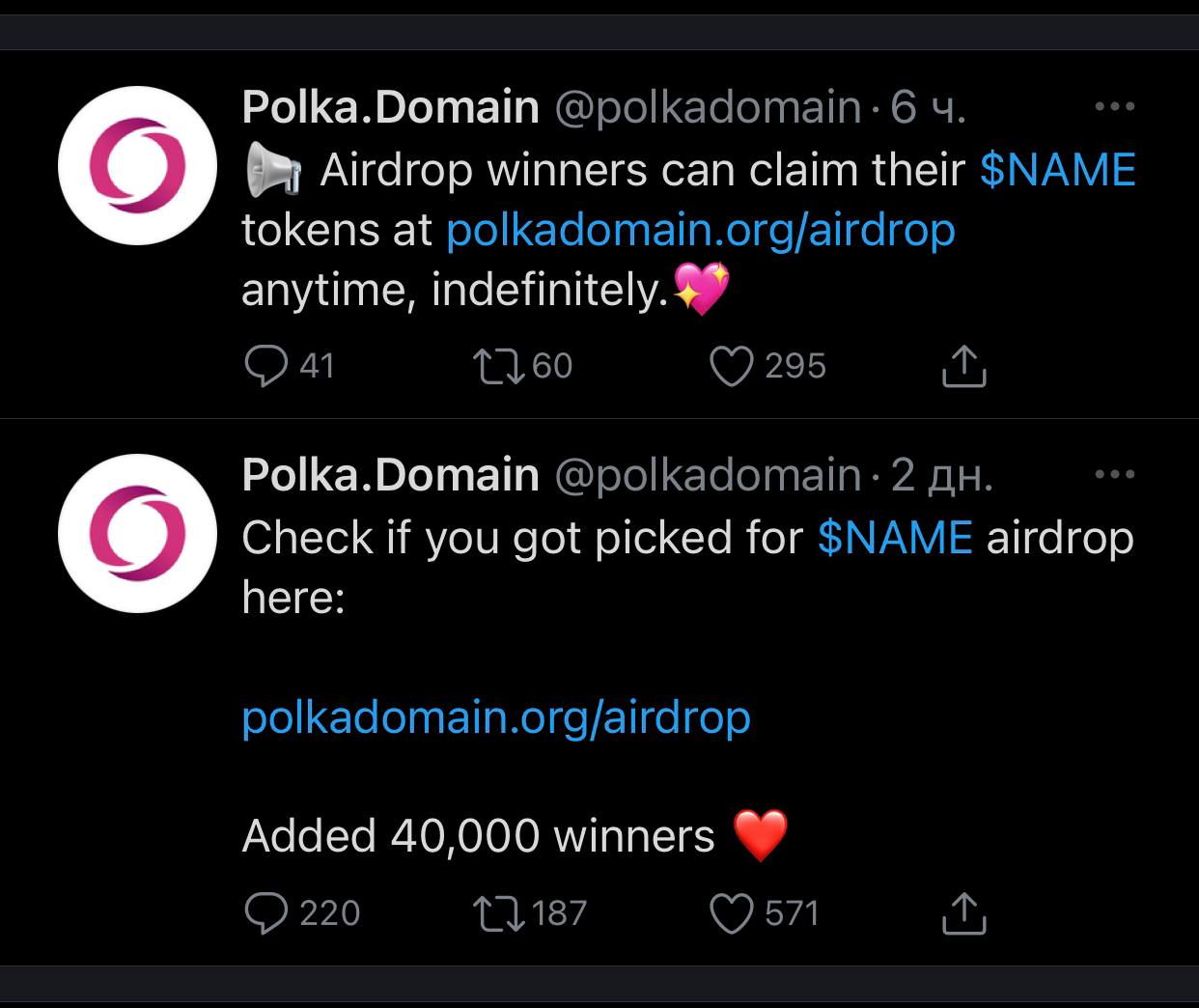 Можно заклеймить токены $NAME с раздачи polkadot💸