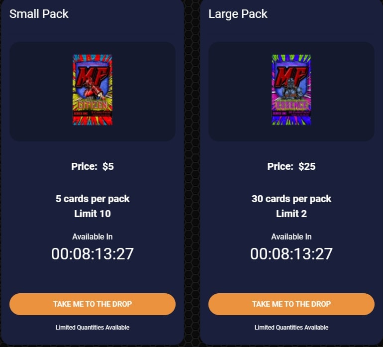 Сами паки будут продаваться через AtomicHub, но там их страница пока не доступна, поэтому можно пока полюбоваться на паки на самом сайте проекта: https://www.metaforcecomics.io