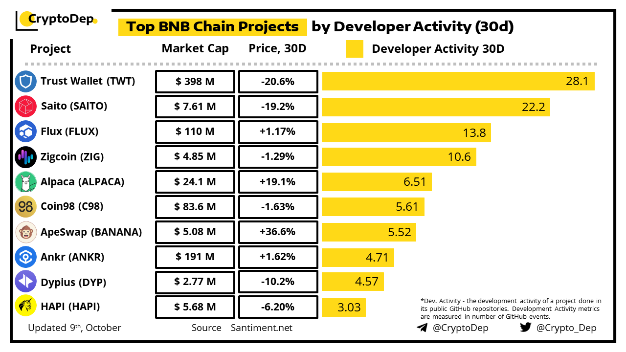 Top BNB Chain Projects by Developer Activity (30d)