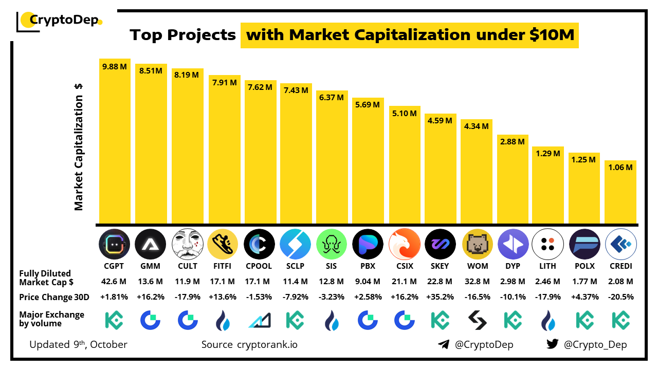 Top Projects with Market Capitalization under $10M
