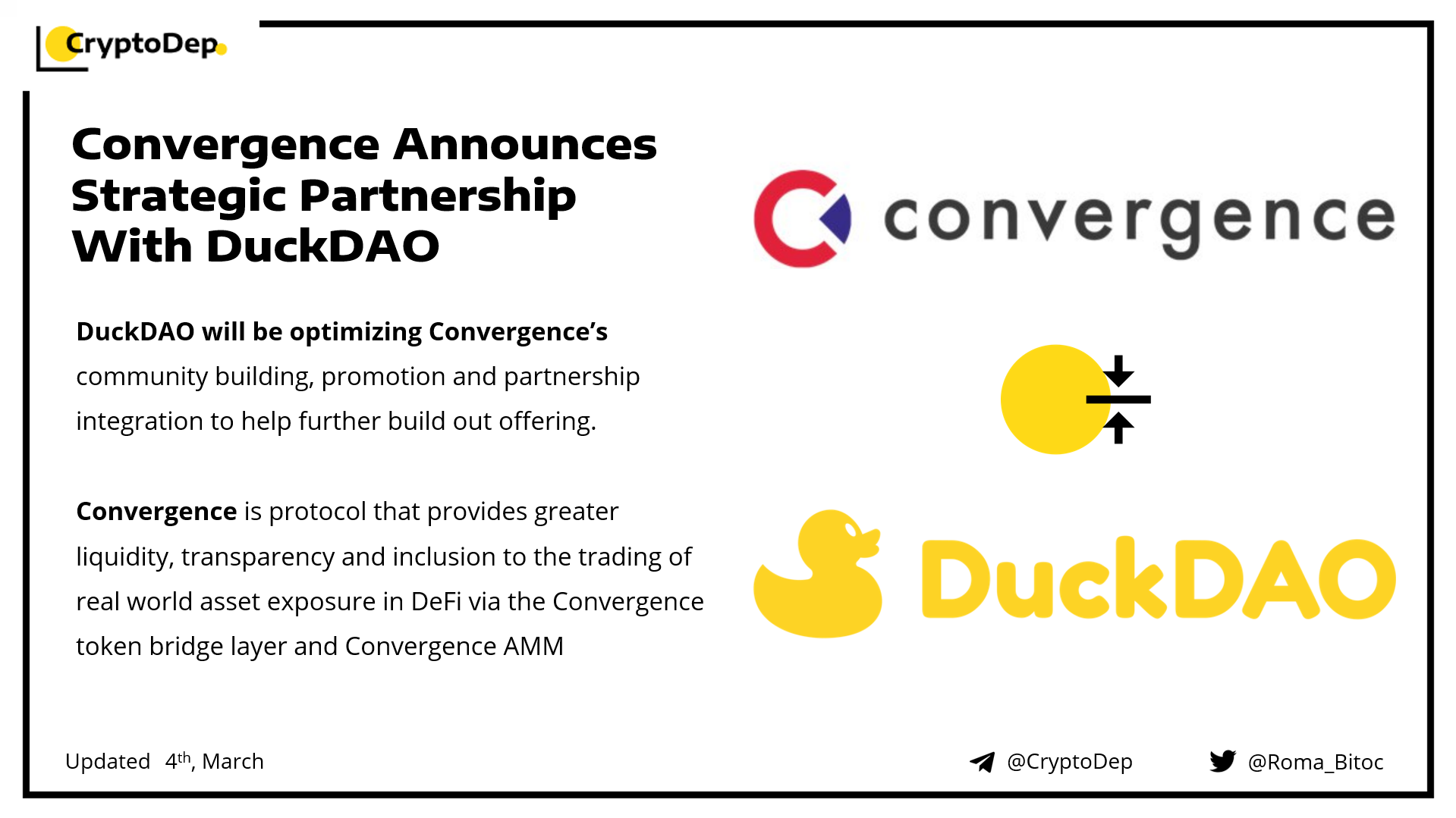 ππ»https://medium.com/convergencefinance/convergence-x-duckdao-strategic-partnership-announcement-7543b7fa6676
