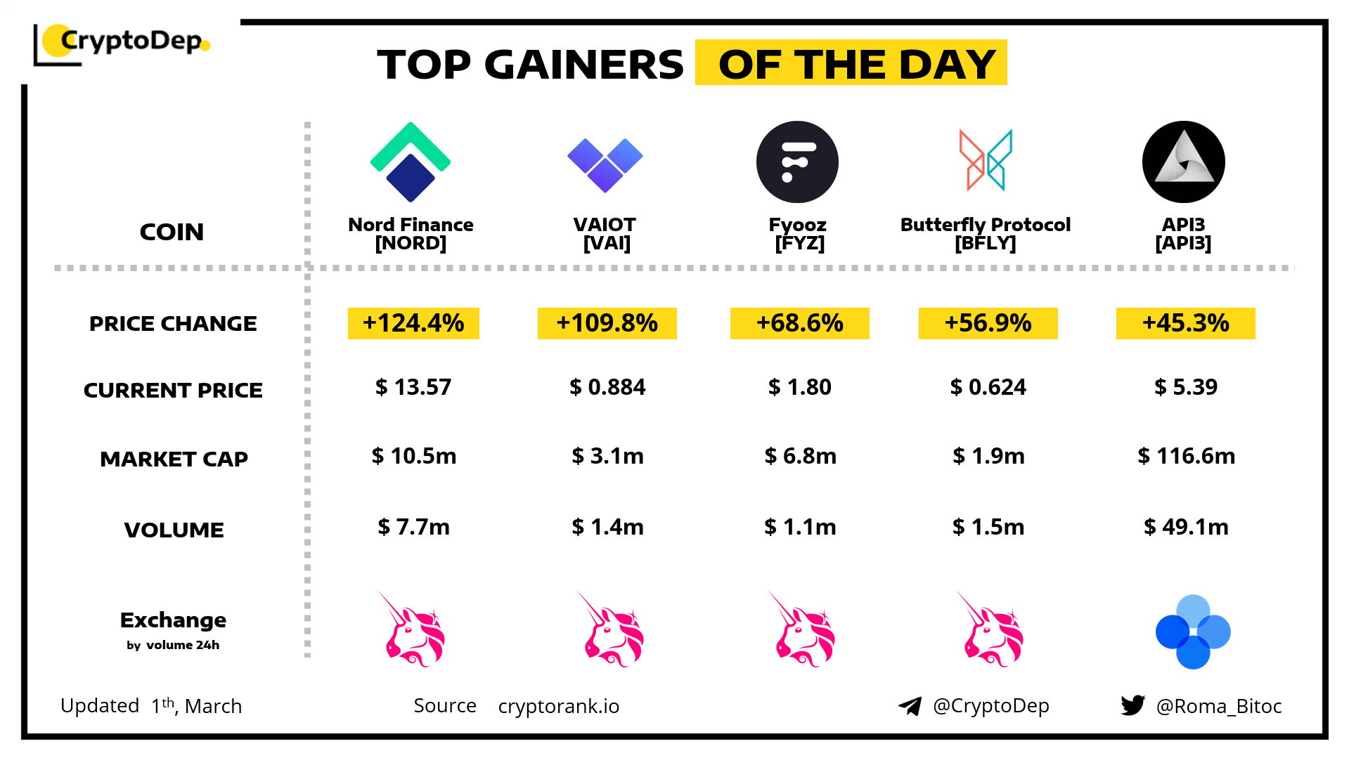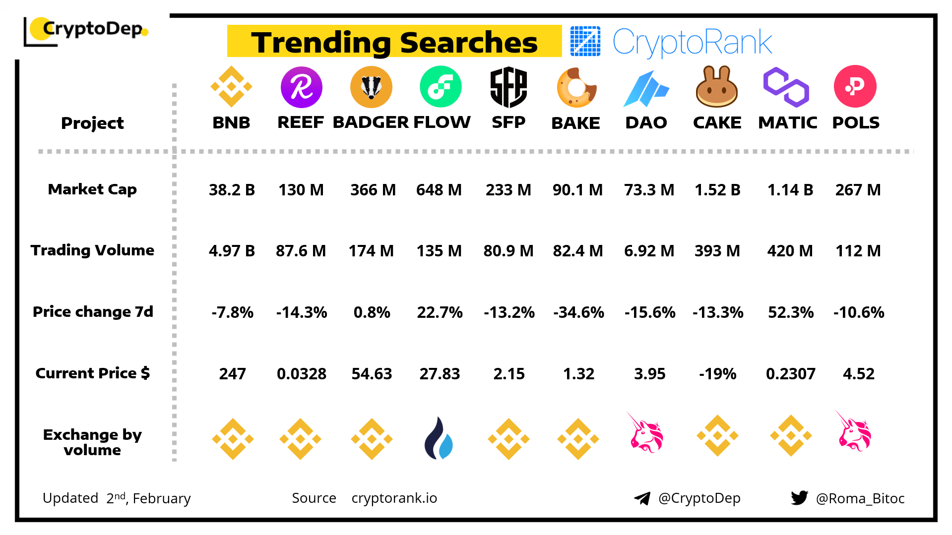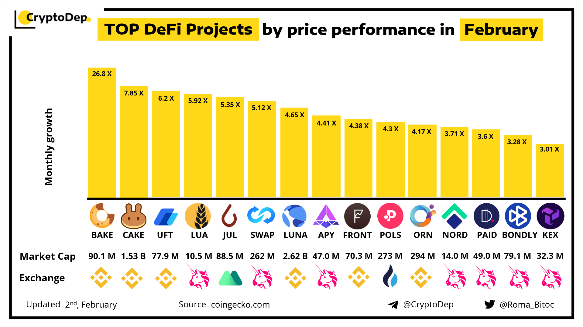 ββTOP DeFI Projects by price performance in February