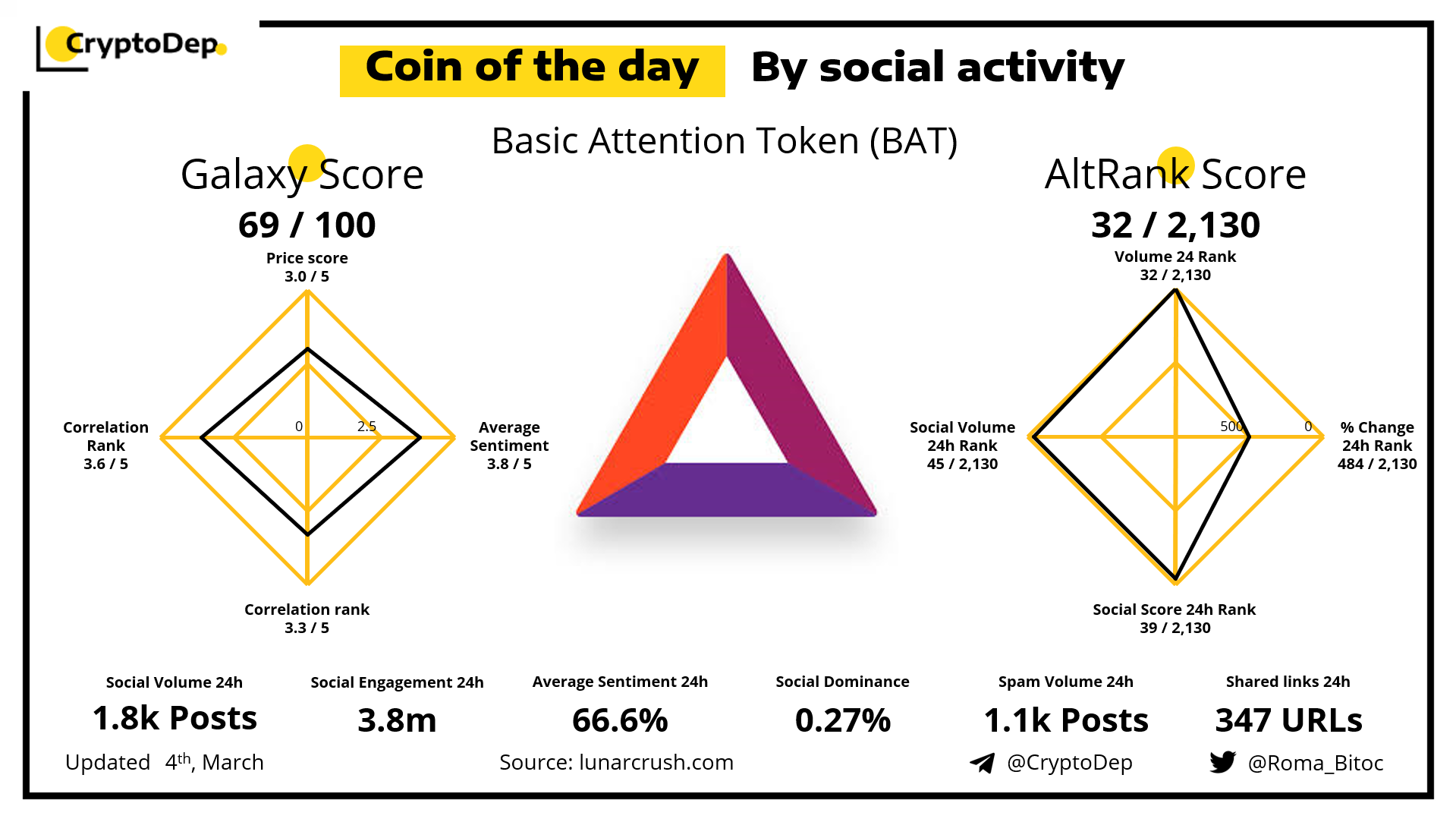 ββCoin of the day by social activity - Basic Attention Token (BAT).