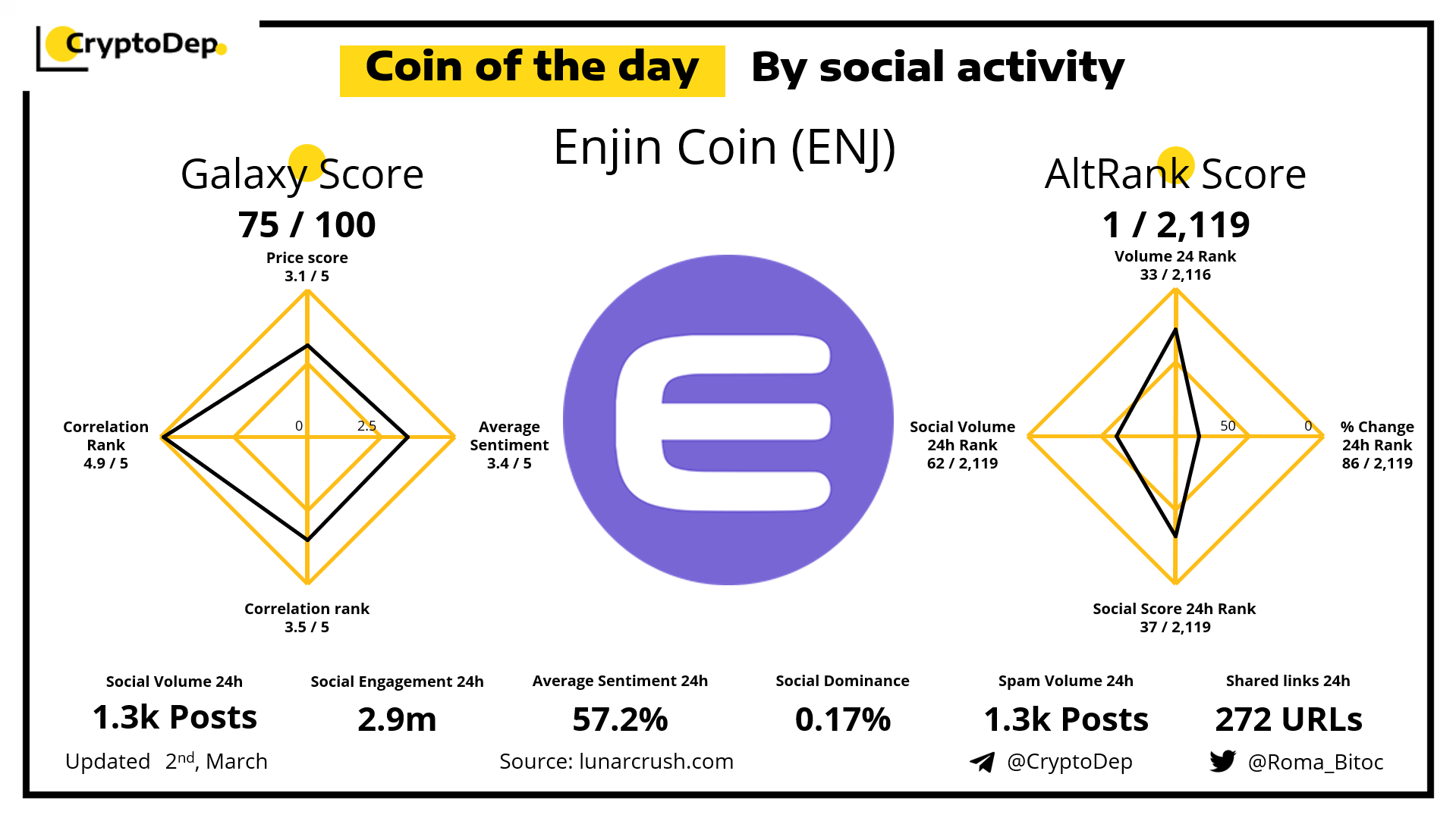 ββCoin of the day by social activity - Enjin Coin (ENJ).