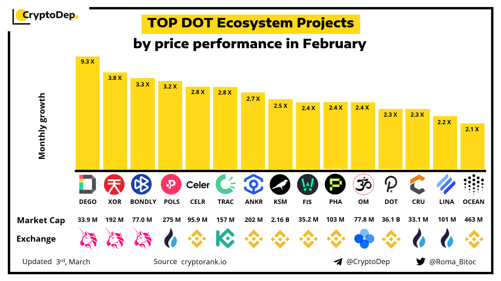 ββTOP DOT Ecosystem Projects by price performance in February