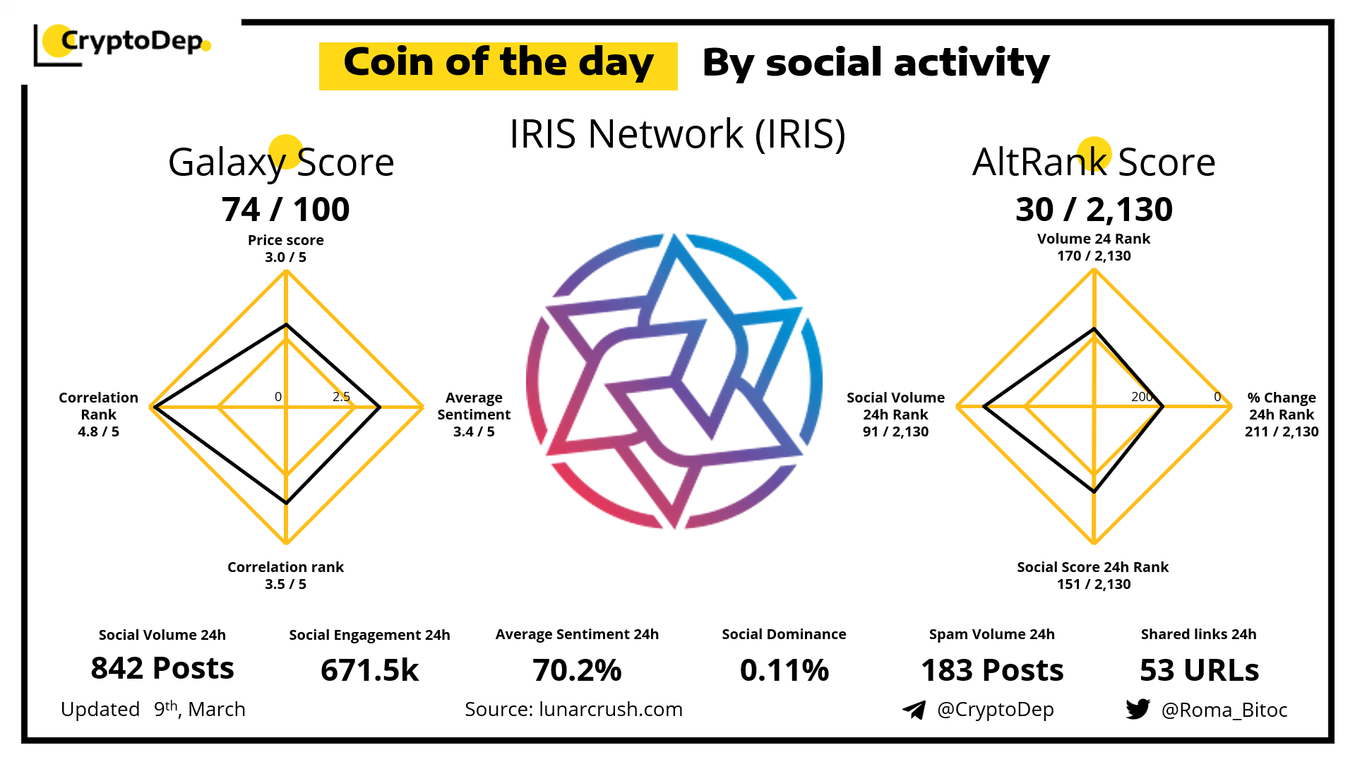 ββCoin of the day by social activity - IRIS Network (IRIS).
