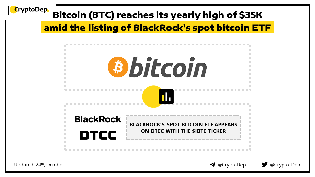 ββBitcoin (BTC) reaches its yearly high of $35K amid the listing of BlackRock's spot bitcoin ETF