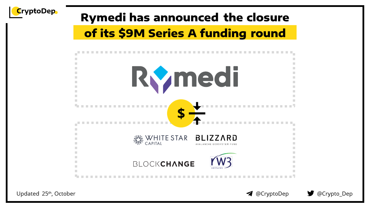 Rymedi, a Web3 healthcare data firm, raises $9M in a Series A funding round, co-led by RW3 Ventures and White Star Capital. Additional round participants included Blockchange Ventures and Avalancheβs Blizzard Fund. The firm will use the fresh funds to bolster data security and healthcare record accessibility.