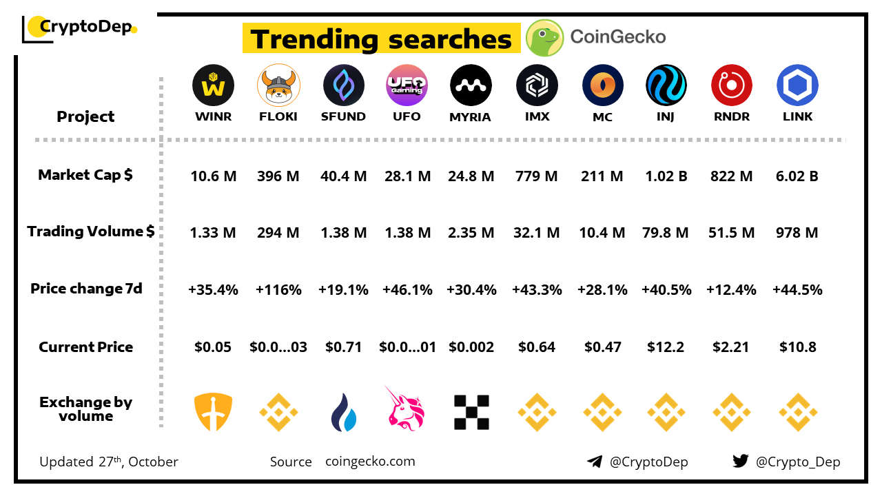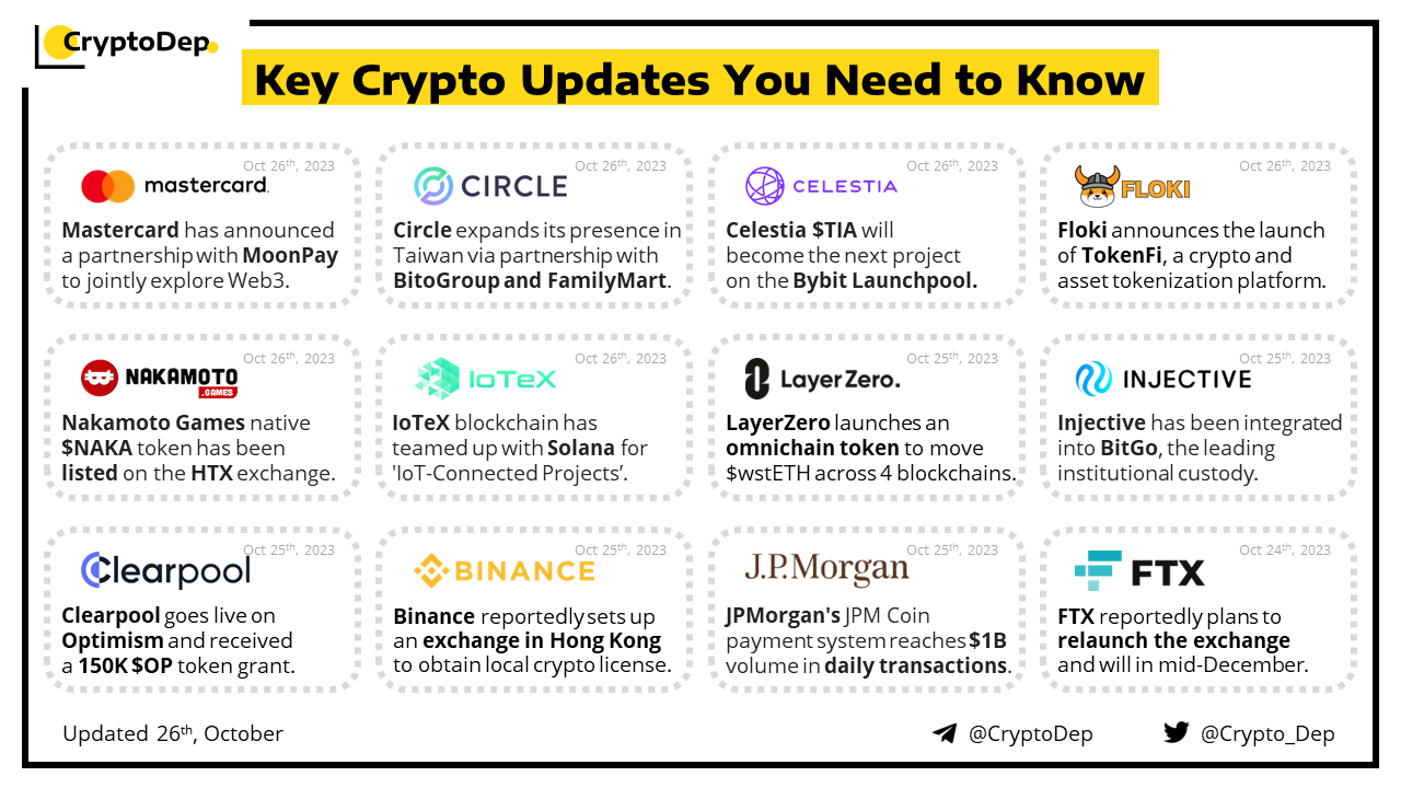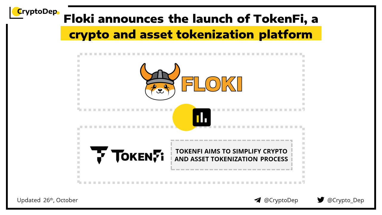Floki launches TokenFi, a crypto and asset tokenization platform to capitalize on the trillion-dollar tokenization industry. The platform will have its token with the $TOKEN ticker, and will be for trading on Uniswap & PancakeSwap on October 27th. Moreover, the firm will also release project's roadmap and website on October 27th.