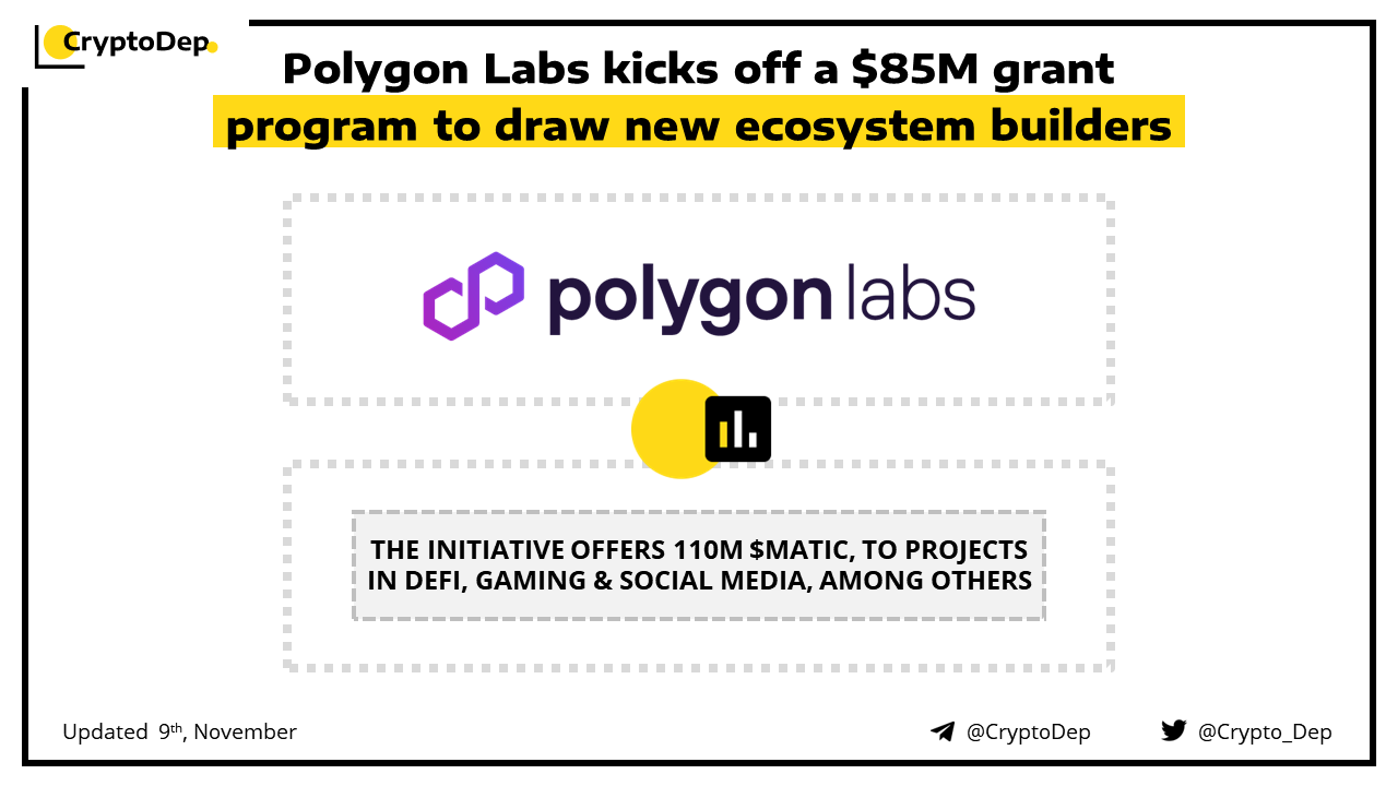 Polygon Labs, an Ethereum scaling platform, has announced the launch of its grant program with the offering of 110M $MATIC (~$85M). The initiative seeks new ecosystem developers from various sectors, including DeFi, gaming and social media, among others. Polygon Labs also partnered with Near Foundation today and will develop zkWASM.