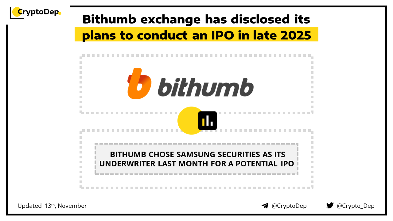South Korean cryptocurrency exchange Bithumb plans to go public via an IPO in the second half of 2025. The exchange chose Samsung Securities as its underwriter last month for a potential IPO planned in the second half of 2025 on Kosdaq.