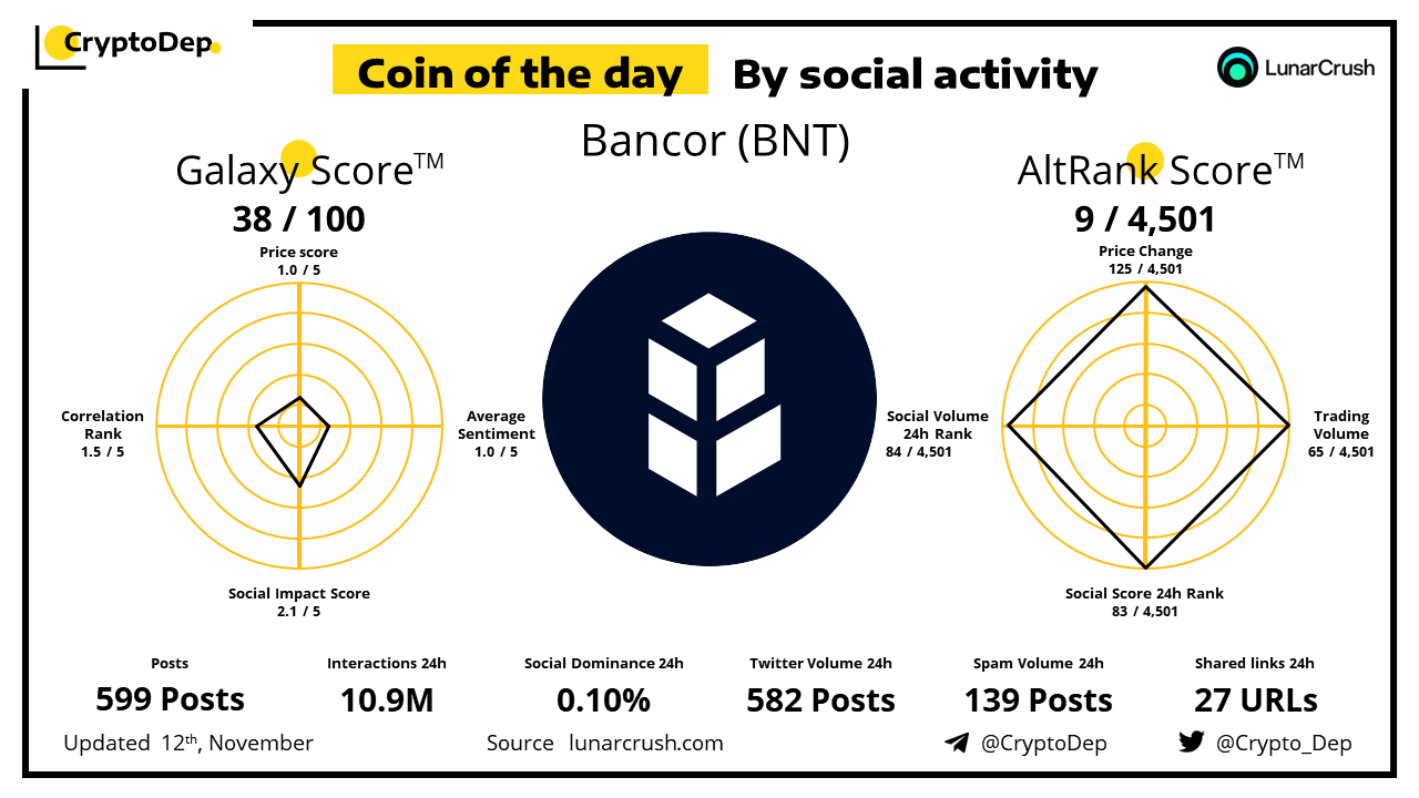 ββCoin of the day by social activity - Bancor (BNT).
