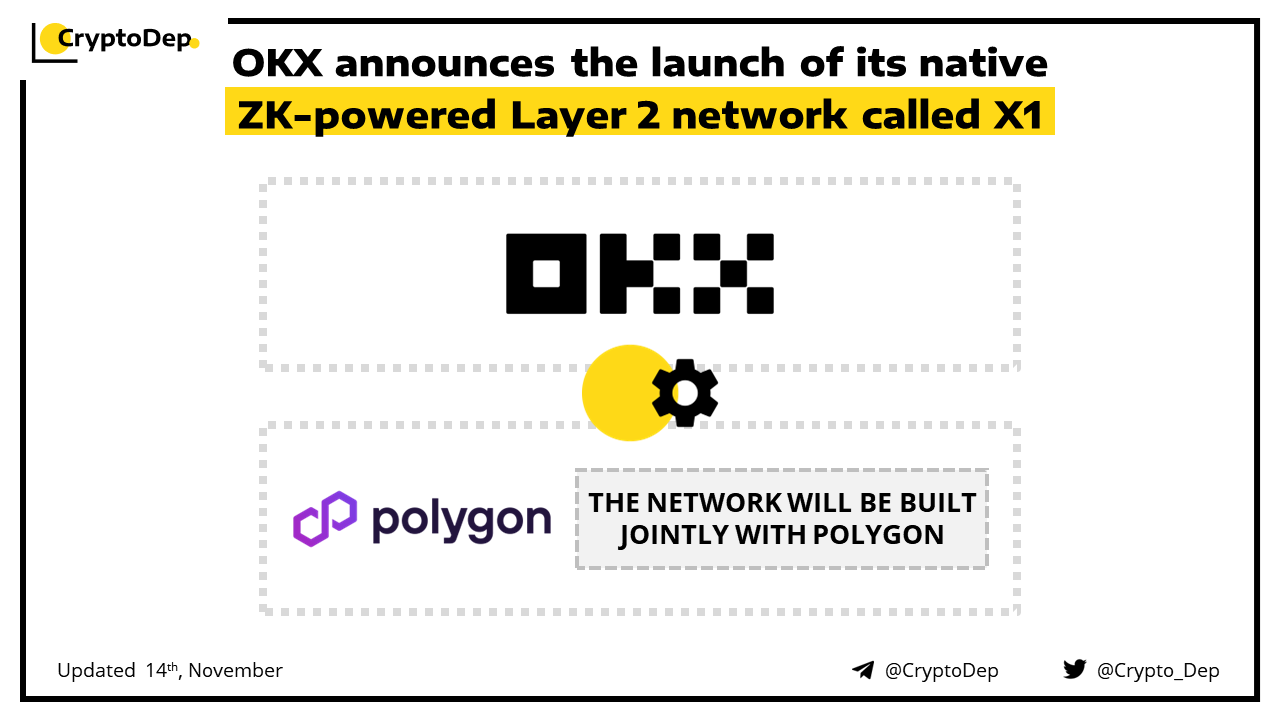 OKX exchange will launch a ZK-powered layer 2 network X1, in collaboration with Polygon. The X1 is aimed at connecting OKX products, users, and assets to Web3, and to provide an open ecosystem that anyone can build on. The mainnet launch is scheduled for Q1 2024, with plans to introduce zkBridge, zkOracle, and zkDEX.