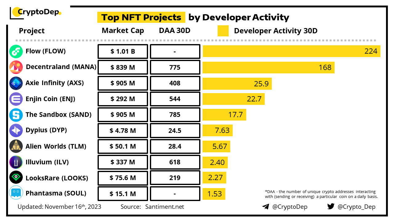 Dev.Activity - the development activity of a project done in its public Github repositories. Development Activity metrics are measured in number of Github events.