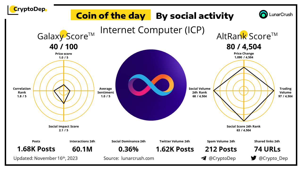 ββCoin of the day by social activity - Internet Computer (ICP).