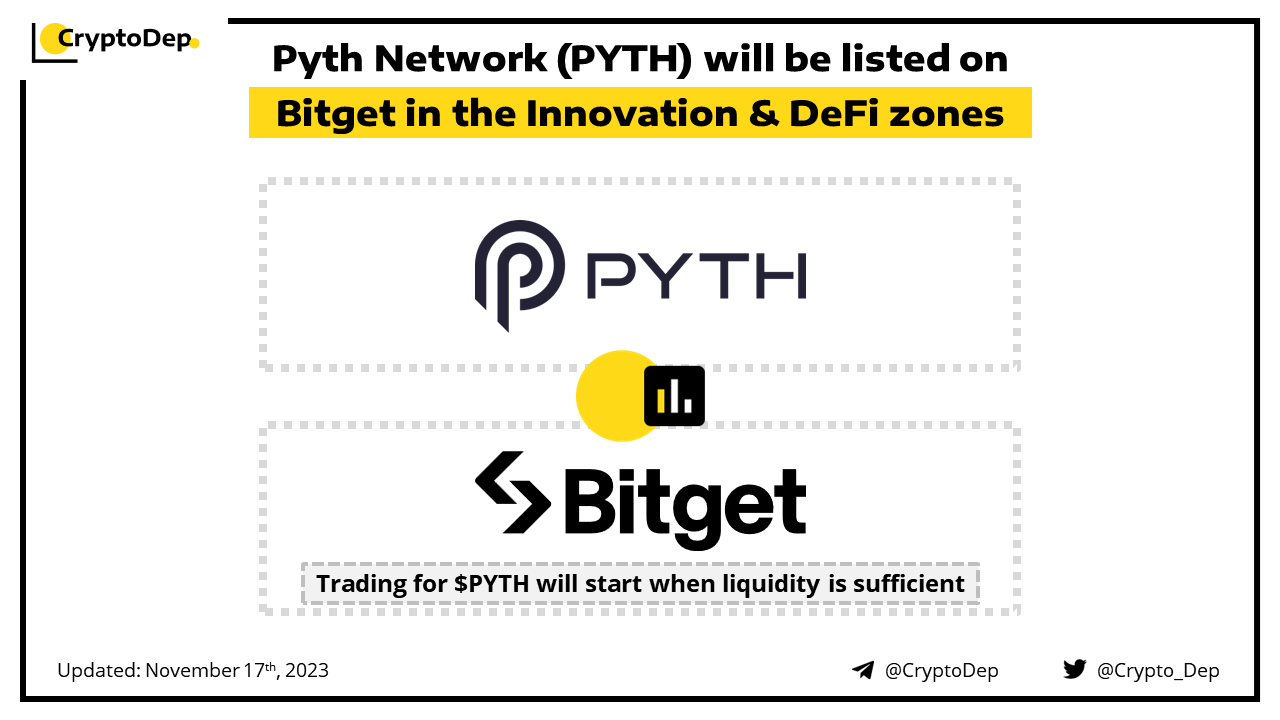 ββPyth Network (PYTH) will be listed on Bitget in the Innovation & DeFi zones