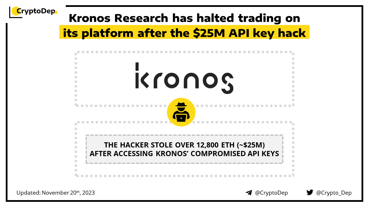 ββKronos Research has halted trading on its platform after the $25M API key hack