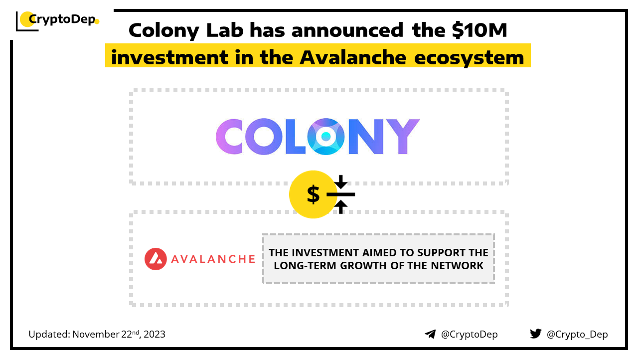ββColony Lab has announced the $10M investment in the Avalanche ecosystem