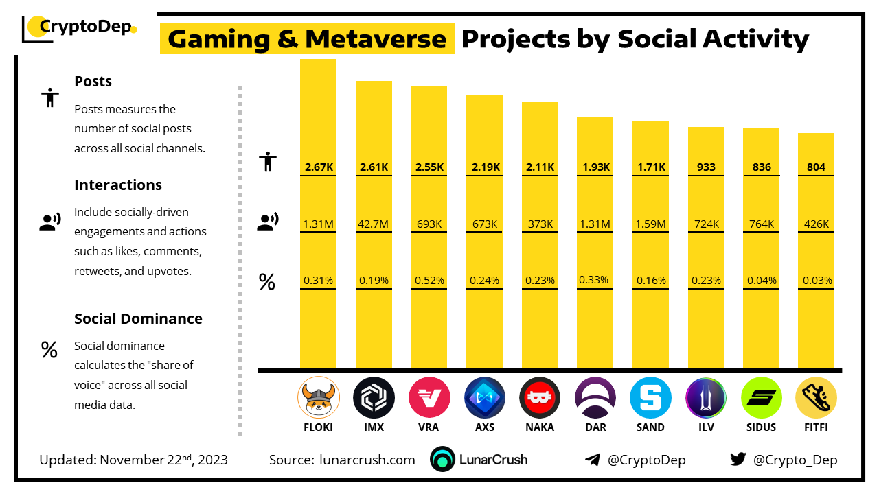 ββGaming & Metaverse Projects by Social Activity
