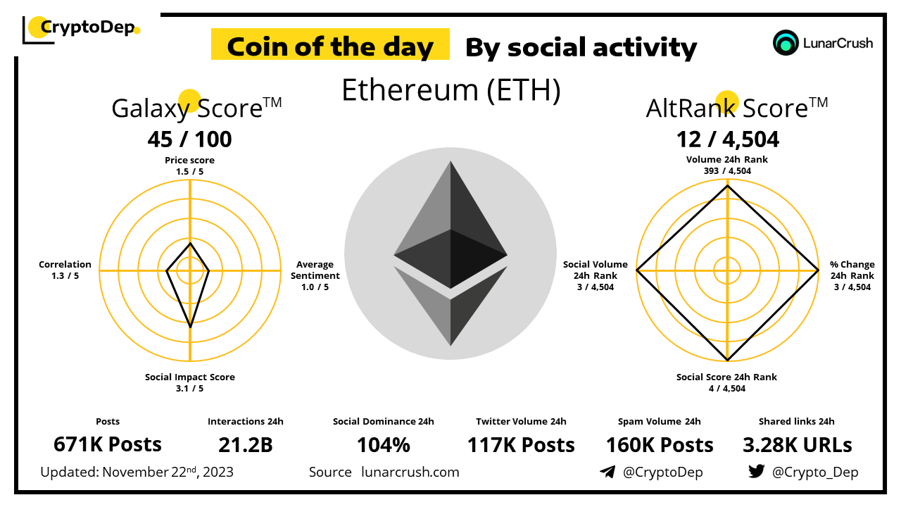 ββCoin of the day by social activity - Ethereum (ETH).
