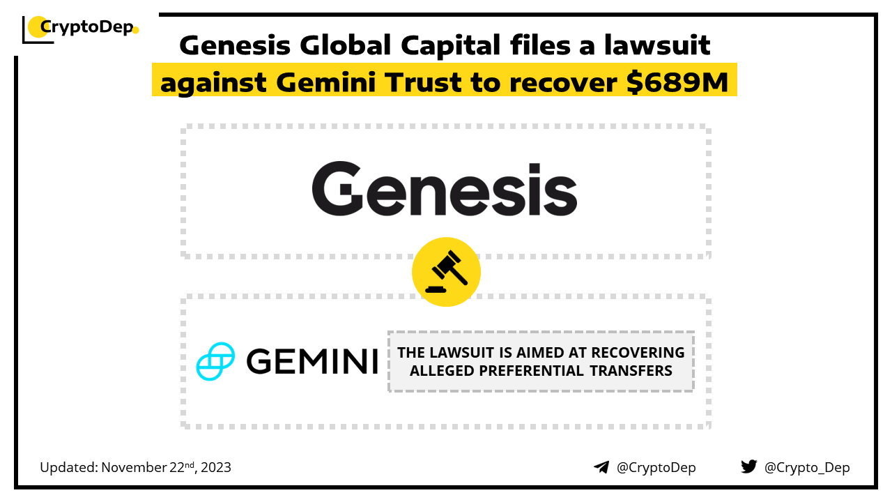 Genesis Global Capital is suing Gemini Trust for allegedly making preferential transfers worth approximately $689M. The lawsuit is aimed at recovering alleged preferential transfers and is part of an ongoing legal battle between the firms following the collapse of crypto exchange FTX, hedge fund Three Arrows Capital and the Terra ecosystem last year. These transactions described in the lawsuit are claimed to have occurred during a critical 90-day period leading up to Genesis's Chapter 11 bankruptcy proceedings in January.