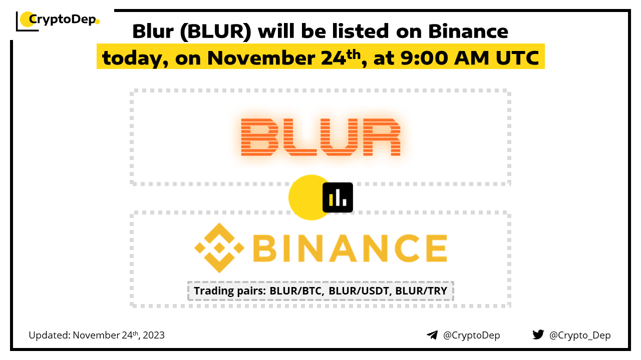 ββBlur (BLUR) will be listed on Binance today, on November 24th, at 9:00 AM UTC