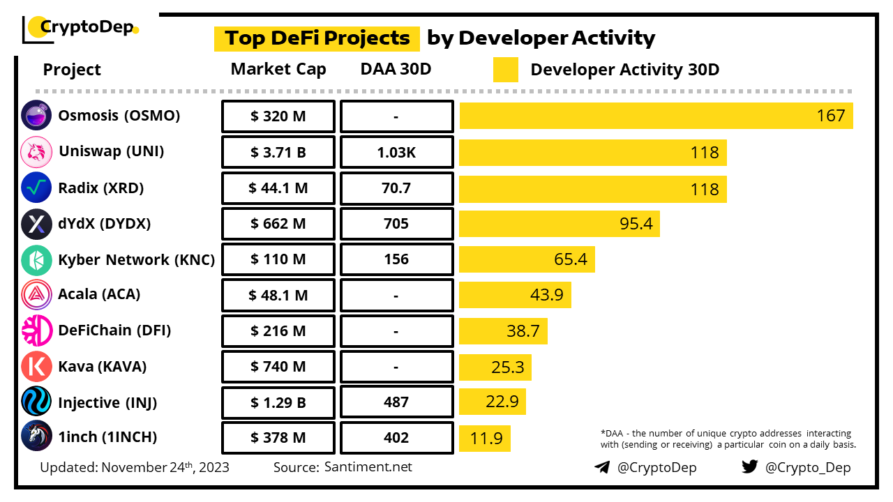 Dev.Activity - the development activity of a project done in its public Github repositories. Development Activity metrics are measured in a number of Github events.