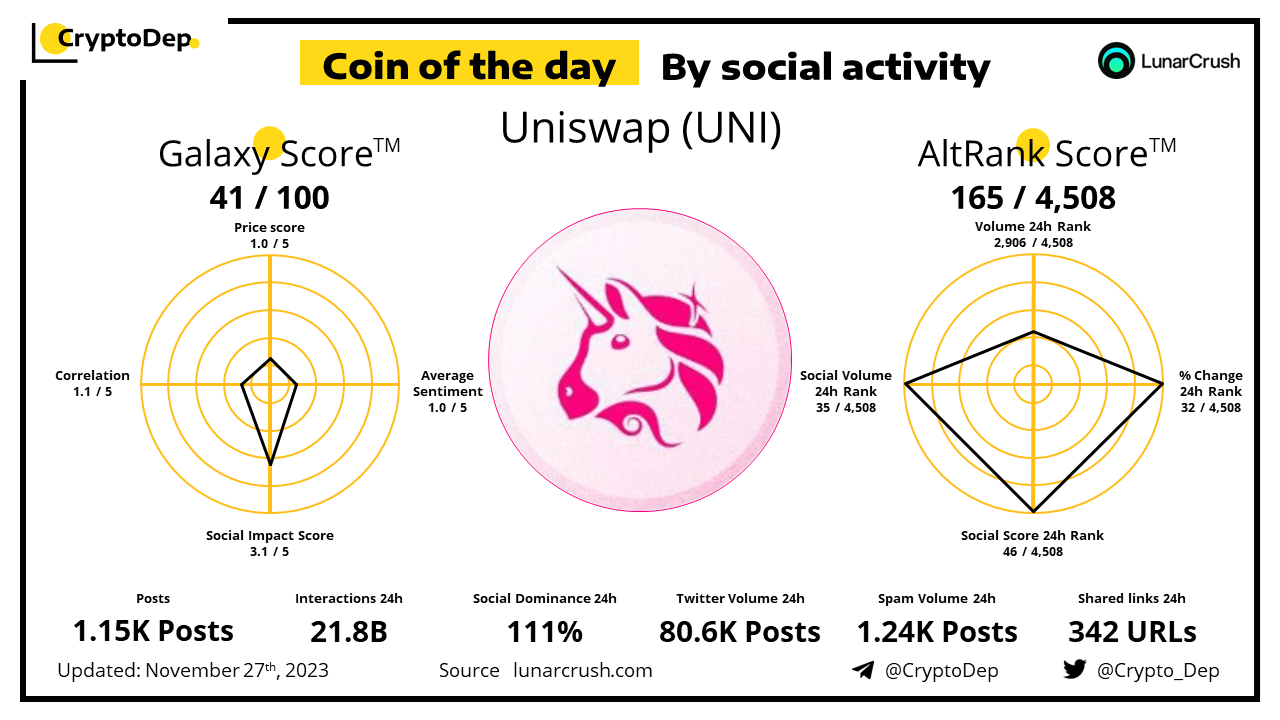 ββCoin of the day by social activity - Uniswap (UNI).