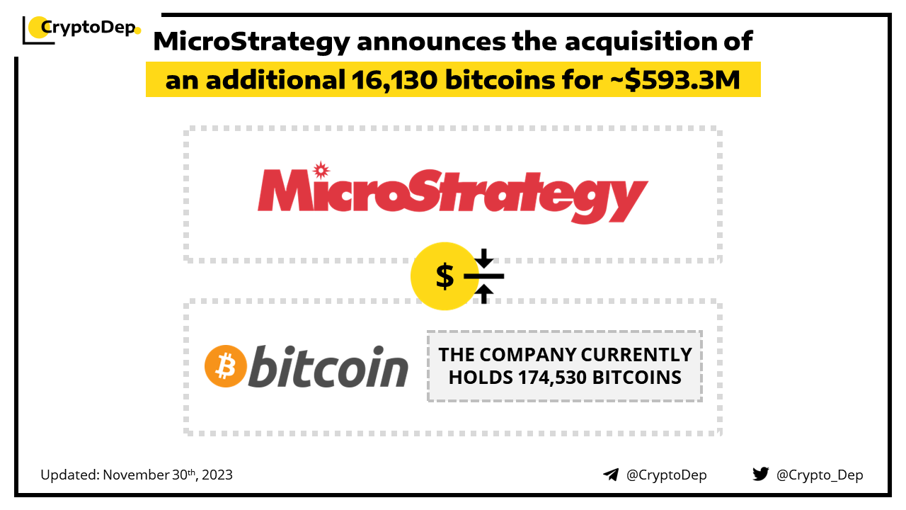 โโMicroStrategy announces the acquisition of an additional 16,130 bitcoins for ~$593.3M