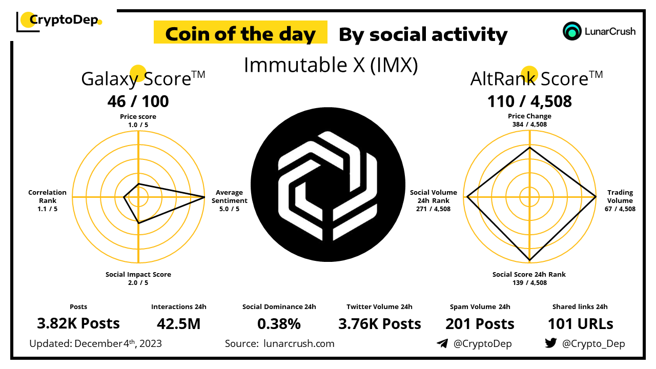 ββCoin of the day by social activity - Immutable X (IMX).
