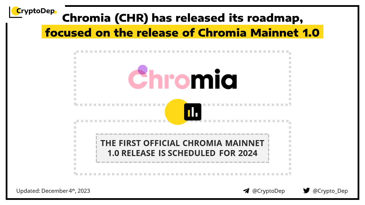 Chromia, an open-source public blockchain, has introduced its roadmap that is currently focusing on the release of Chromia Mainnet 1.0. The mainnet launch is scheduled for 2024 and will mark the final stop on the project's βRoad to Mainnetβ phase and the beginning of a longer journey in which Chromiaβs tech will continue to evolve while its ecosystem grows.