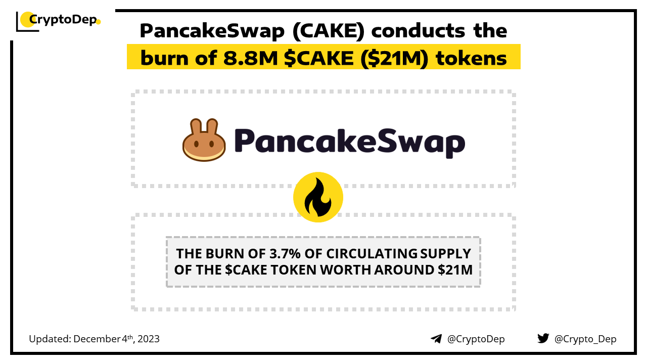 ββPancakeSwap (CAKE) conducts the burn of 8.8M $CAKE ($21M) tokens